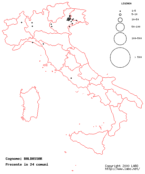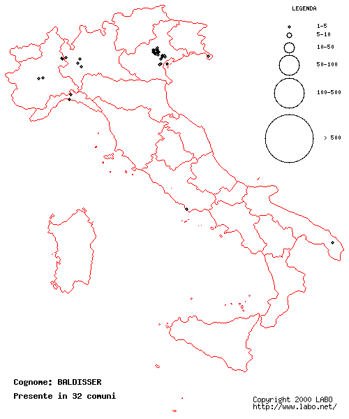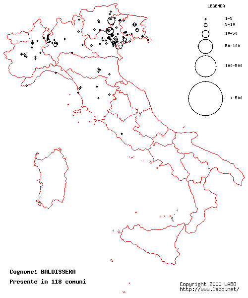 i cognomi Baldisser, Baldissera, Baldassar sono per lo piu' presenti